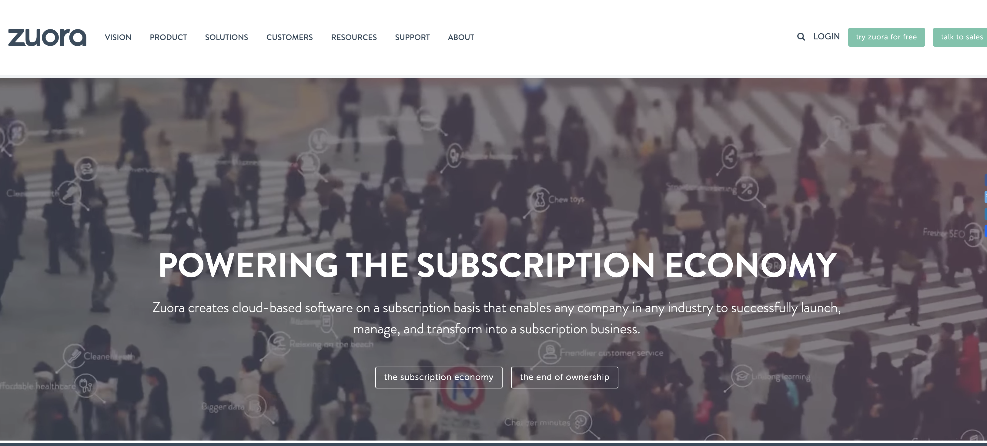 제러미 리프킨이 '소유의 종말'이라는 저서에서 구독 경제의 모습을 미리 예상한 것처럼 현재의 많은 서비스들이 소유 대신에 빌려 쓰는 개념으로 바뀌고 있다. 미국의 골드 러시 시절에 금을 캐는 사람들에게 청바지를 팔아서 돈을 번 사람들처럼 Zuora 역시 구독 서비스 대신 구독 서비스를 하는 업체들에게 도구를 팔아서 돈을 벌고 있다. 물론 Zuora도 구독 서비스이다.